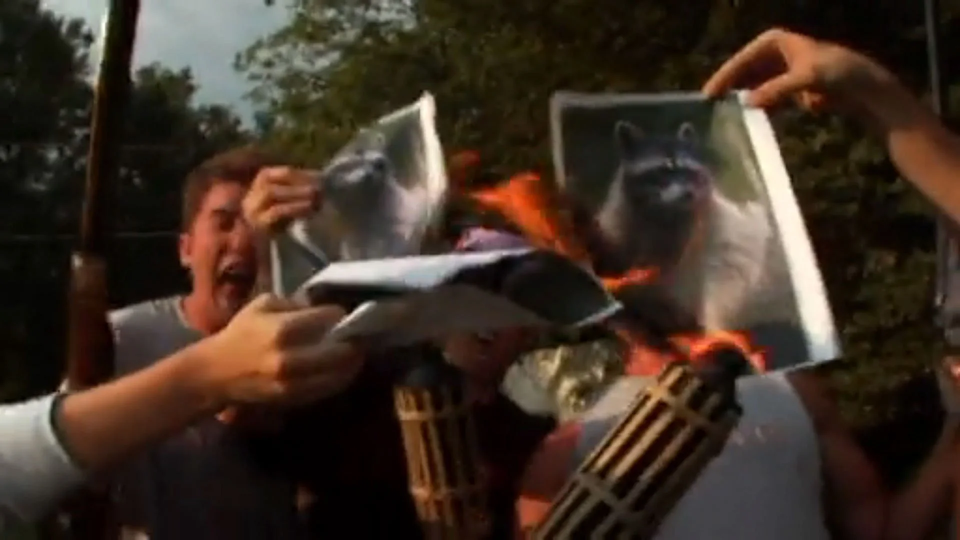 So the campers here the news that raccoons are to blame, and head to the guns and beer and fireworks store to arm up.