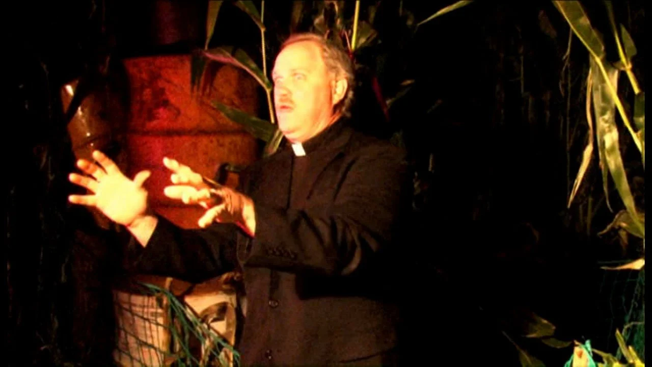 We finally meet the Satanic cult at the centre of the corn maze, as they plot to make their sacrifices...and oops, one of them just ran away.