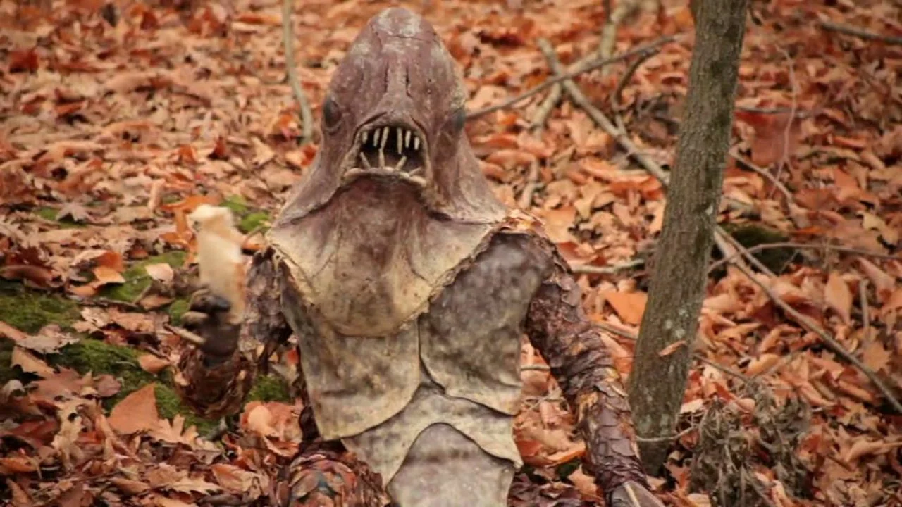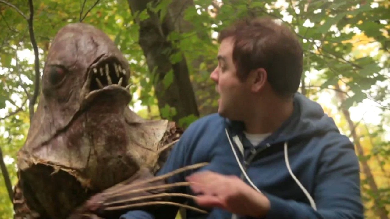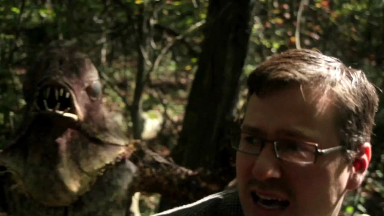 Surprisingly, the trio actually find the Riverbeast. Hootkins sneaks up close to get pictures, but is no match for the creature once it sees him.