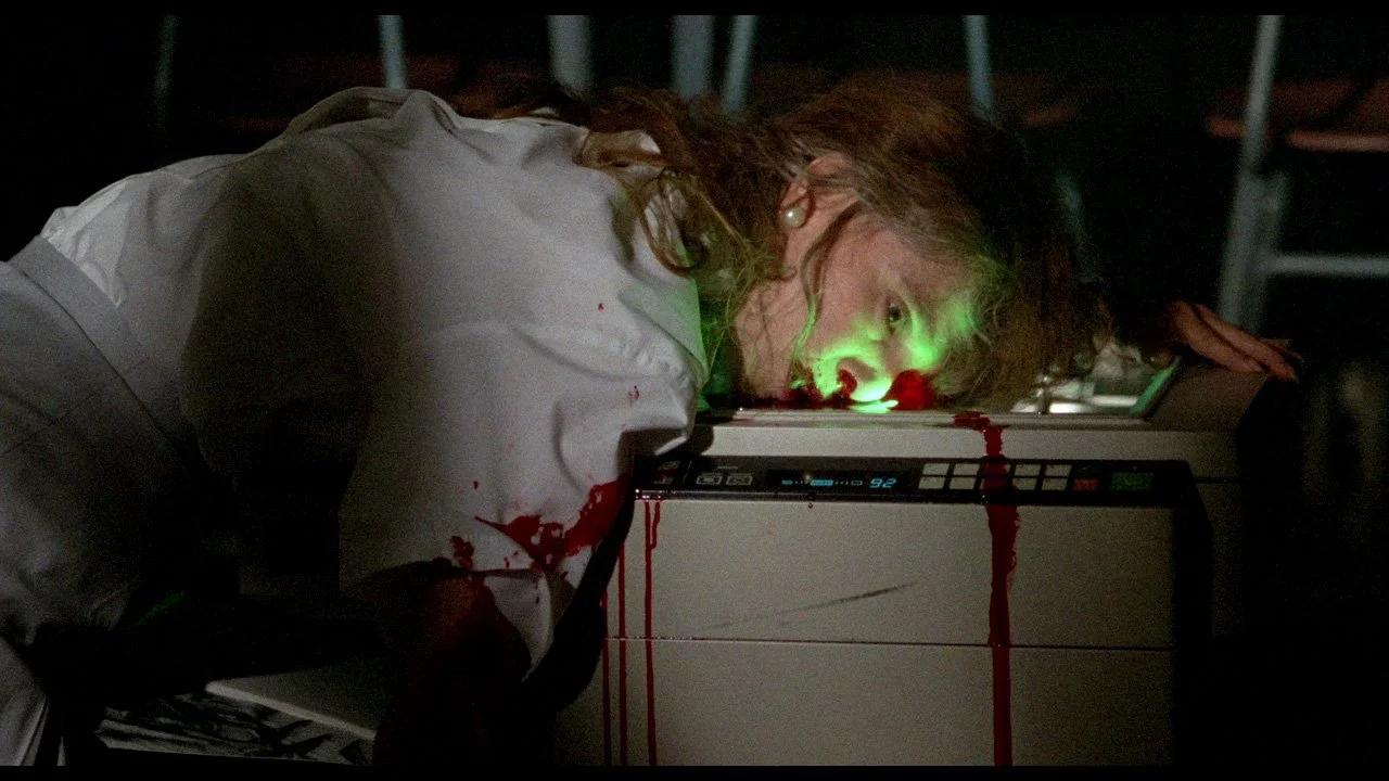 But don't worry, the mysterious killer who is totally a mystery, mashes the vice principal's face onto the copier until she's dead.
