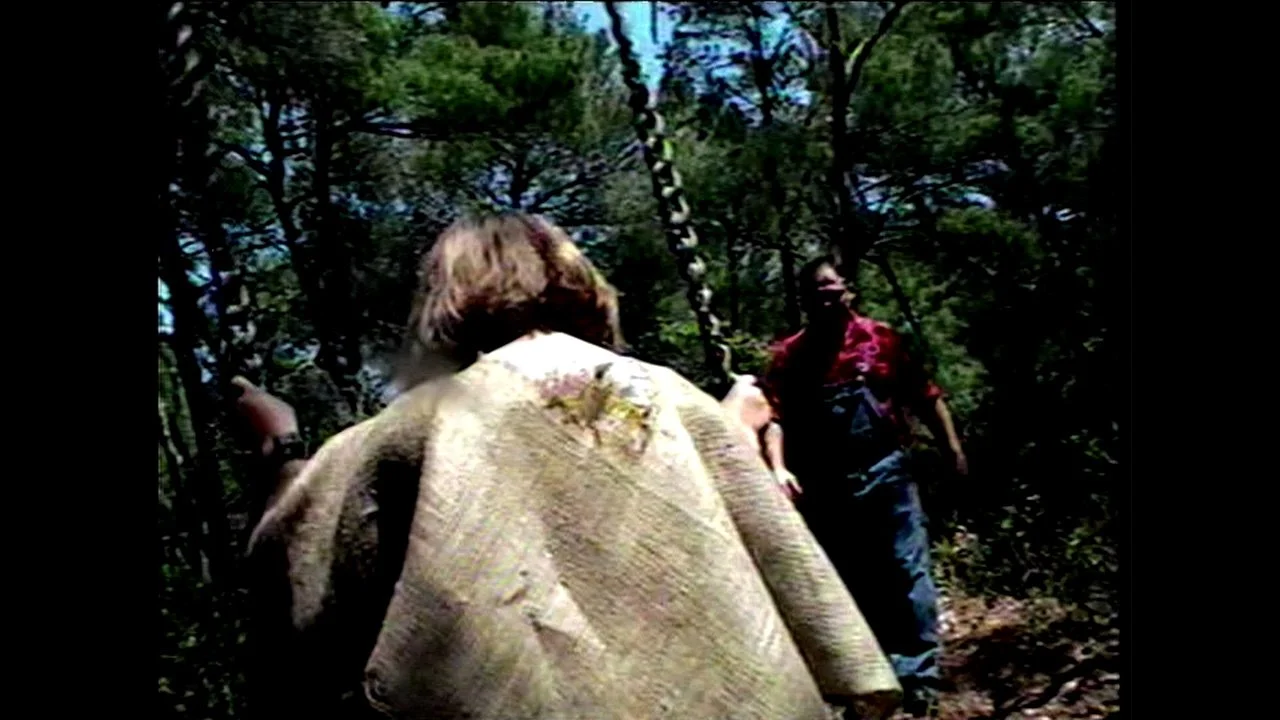 The movie starts off as a hunter is wandering the woods, and he crunches on a sign that, when he clears off the dirt and leaves, has BEWARE scrawled on it. He wonders what he's supposed to beware of, and oh, you should not have asked.