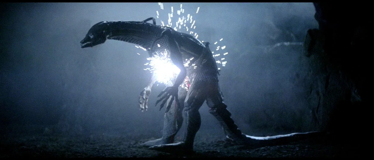 With 20 minutes still to go, the movie obviously isn't over yet, but the creature plays possum when they poke it.