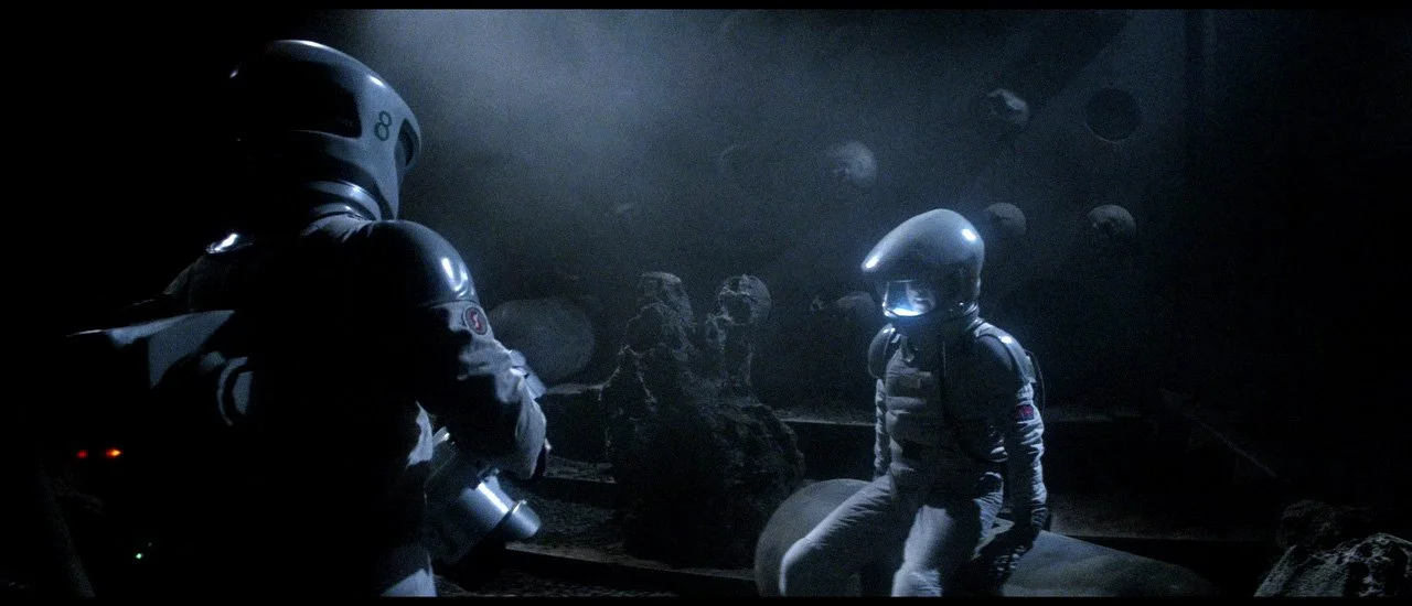 One of the astronauts investigates the casket, and thinks he sees the creature move, and it spooks him. They brush it off as just a trick of the light, but they also cracked the casing when he dropped his flashlight.