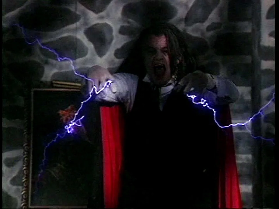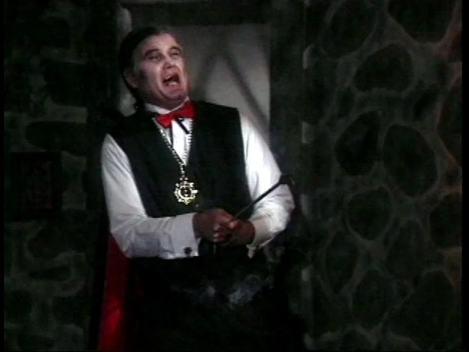 The boys get chased off by the bad Emperor Palpatine impression, and make one last attempt to kill the vampire lord, while his trio of brides dance about in the courtyard.