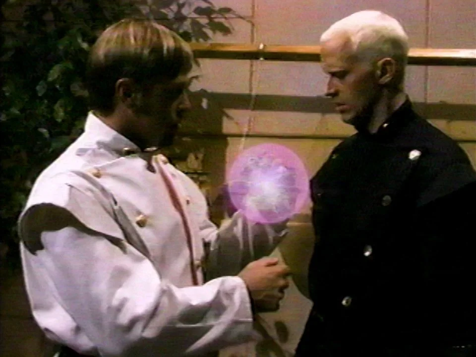 But the emperor calls his grandson in, and Yahkin takes his latest hostage, the prince from the previous world, through a handful of sets that are not much better than some of the sets in Die Hard Dracula. Doctor Who is gonna be around any given corner, I'm sure.
