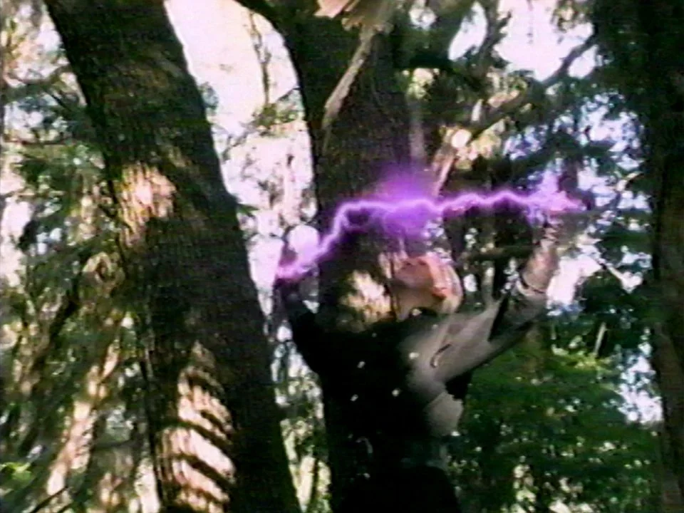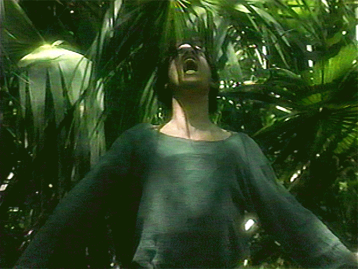 Mira chases them out of the forest, blasting with the sword, and Yahkin's men get pretty banged up, but manage to not have anyone else die. Oh yeah, she can uses the sword because she had sex with Lou during one of their nights together. And she got insta-preggo. Once they reach the edge of the forest, the sword no longer works, and tech does. So, Yahkin threatens them with a gun.