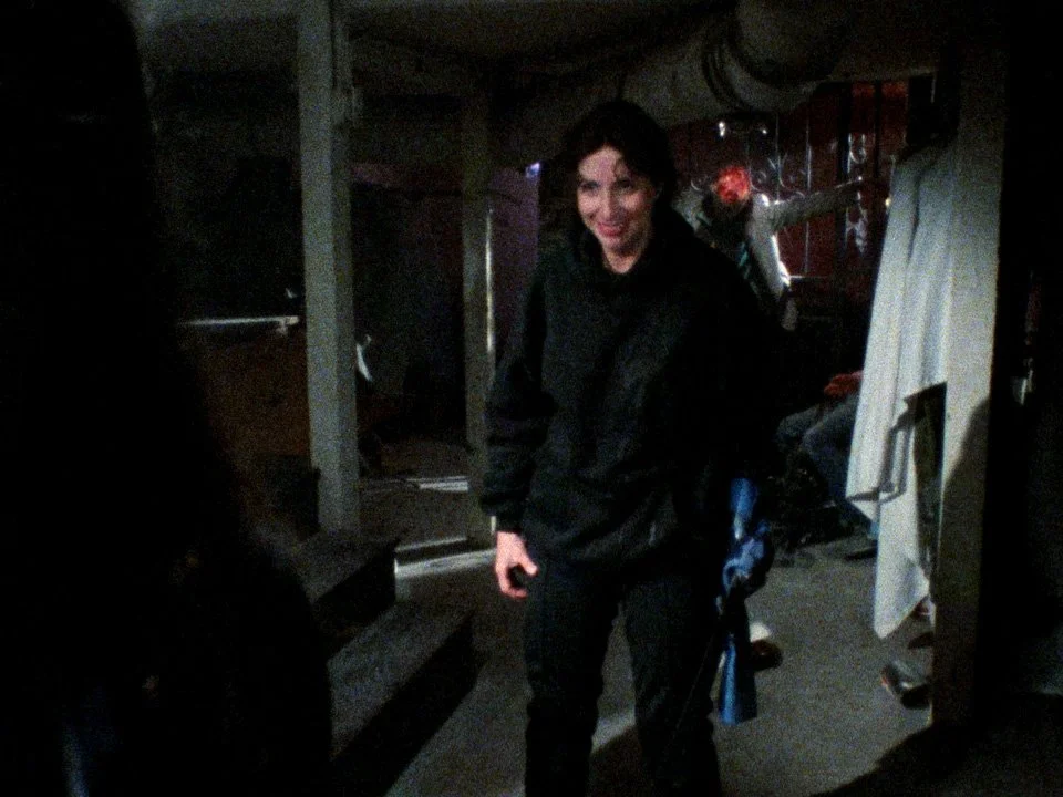Connie can't find a single soul, just mounting gory evidence of their passing. She slowly unravels and just starts shooting randomly at shadows.