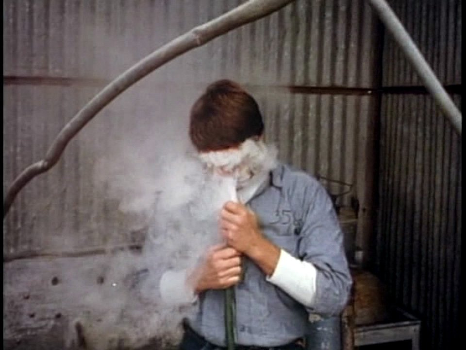 Also, he takes a long, long huff of formaldehyde vapours, and they spend a lotta time passing the gas around the camp.
