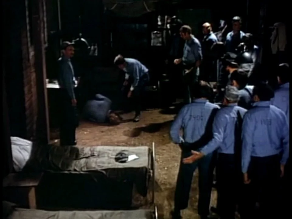 Meanwhile, the rest of the prisoners are made to dig the unmarked graves for the escapees, and dump their bodies in.