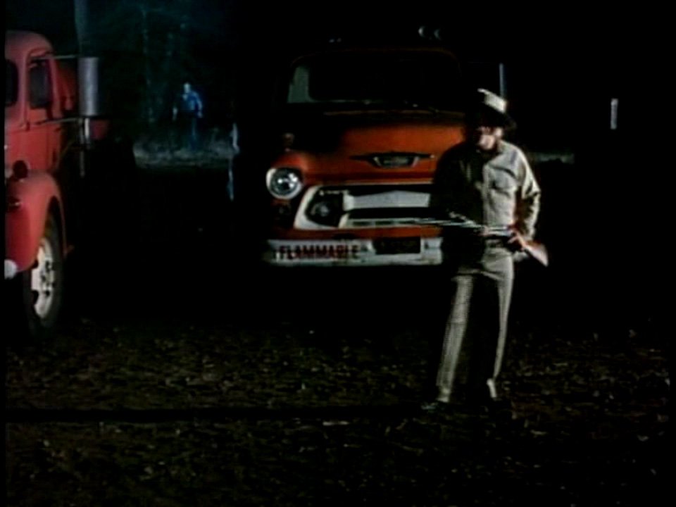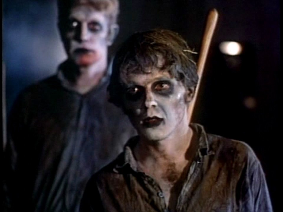 Y'know, for a dumb movie with no budget, the zombies actually don't look half bad. I'll try and get a few good shots in. They look as bit more dodgy when light is shining RIGHT on ‘em, but it’s got a unique, striking look.