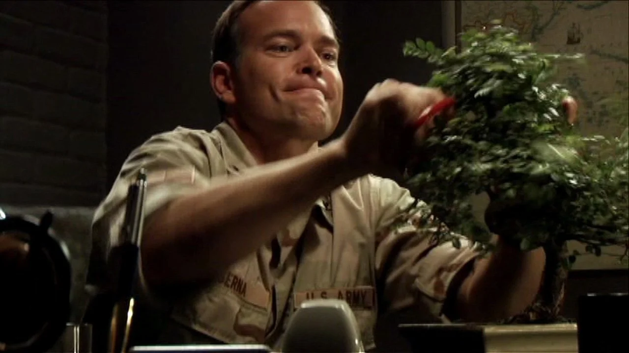 Maddie invites Darren to dinner after he's done unpacking, and while they get a nice meal, we cut to another army base that is TOTALLY not the same one in a different colour grade, because it says New Mexico.