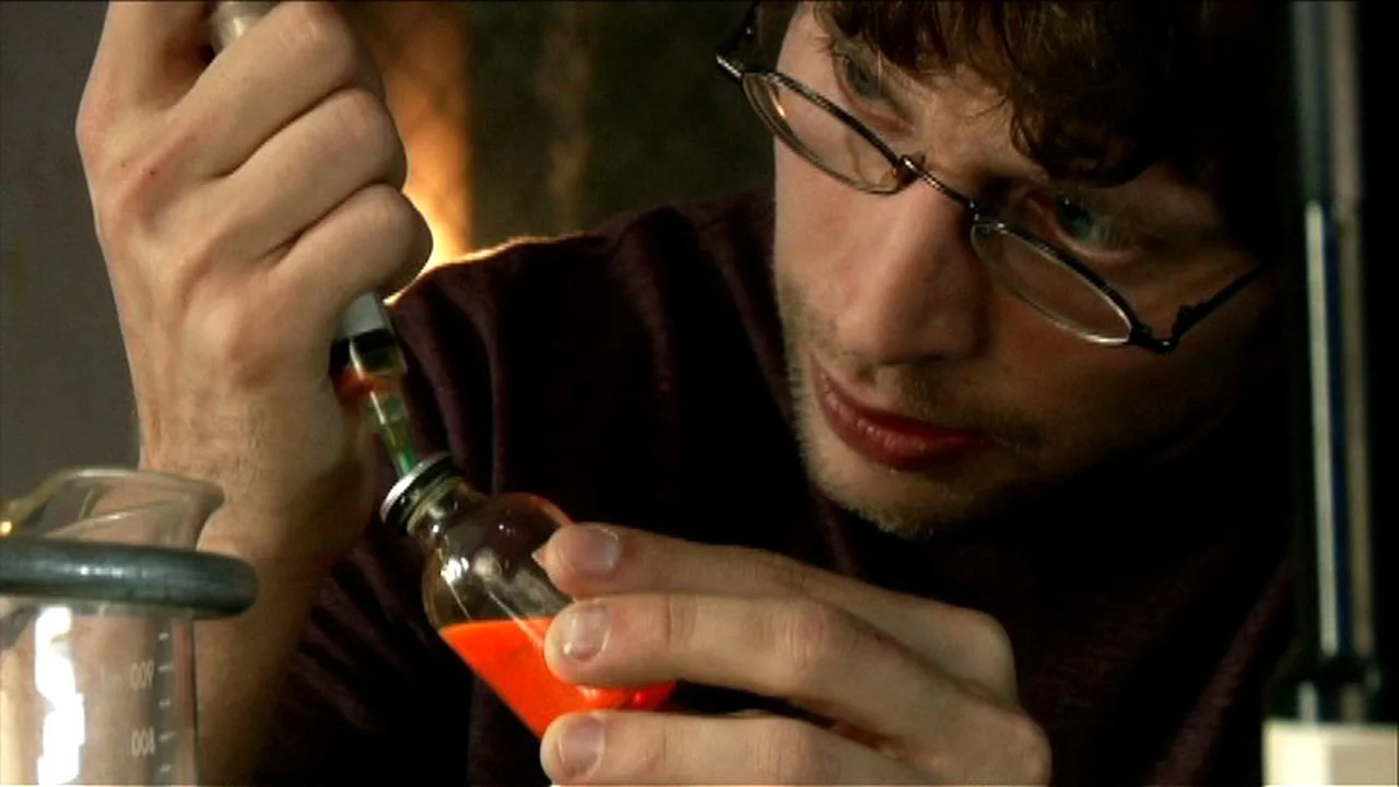 He injects some mice he shares his apartment with, and does some general science stuff. Fortunately, nowhere near as much sciencing as Vile 21.
